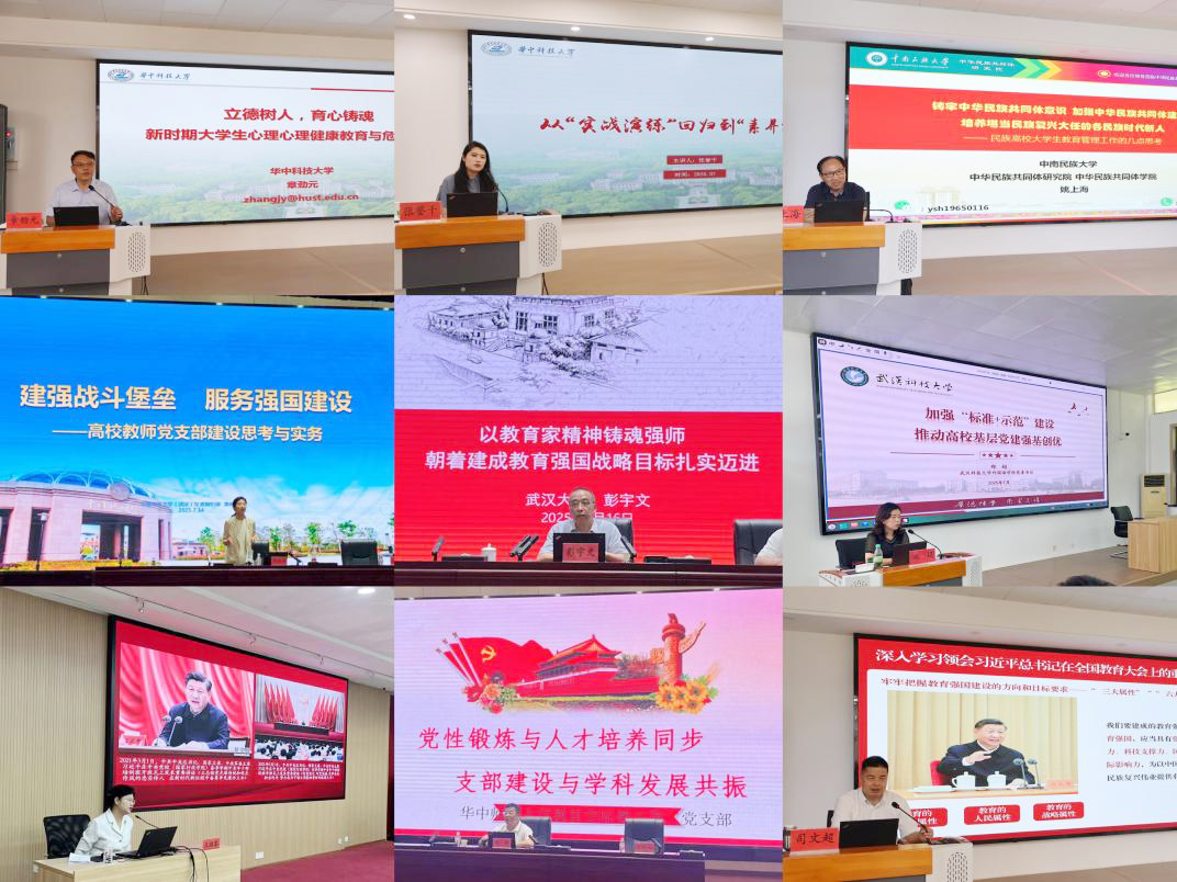 为期4天的培训,内容丰富多样、形式灵活务实。针对教师党支部书记和组织员队伍,王晓琴讲授了《共产党人的理想信念》,武汉大学彭宇文教授讲授了《以教育家精神铸魂强师,朝着建成教育强国目标扎实迈进》;全国党建示范高校中国地质大学(武汉)党委组织部李海涵讲授了《建强战斗堡垒服务强国建设——高校教师党支部建设思考与实务》;武汉科技大学外语学院党委书记郑娟讲授了《加强品牌示范建设,推动高校基层党建强基创优》;华中师范大学教育学院郑刚教授讲授了《党性锻炼与人才培养同步,支部建设与学科发展共振》。