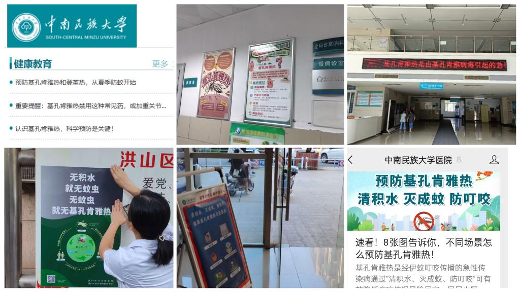 学校高度重视基孔肯雅热、登革热等蚊媒传染病防控工作。校医院成立专项工作组,制定了《基孔肯雅热防控应急预案》《基孔肯雅热应对实施方案》,设立了发热门诊监测哨点,开展全员培训,做足充足的物质准备。后勤保障处开展专业消杀,对教学楼、宿舍区、绿化带等区域实施药物喷洒。民大社区居委会积极开展健康宣教,动员居民对积水点、庭院、卫生死角等重点区域开展巡查清理。多方联动,形成了“医疗监测+环境治理+健康教育”三位一体防控体系。