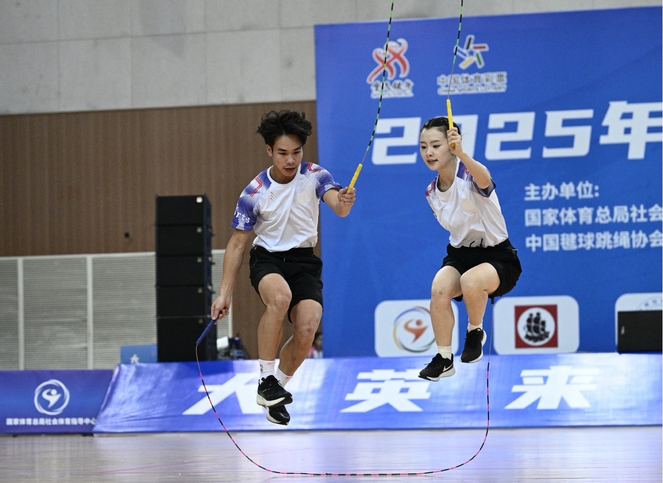 必赢官网队员交互绳花样比赛中。 刘思邈摄