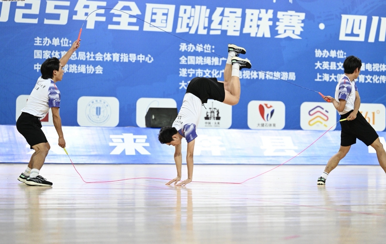 8月14日至17日,由国家体育总局社会体育指导中心、中国毽球跳绳协会主办,全国跳绳推广委员会、遂宁市文化广播电视体育和旅游局、大英县人民政府承办的2025年全国跳绳联赛(四川大英站)在大英县体育馆举行,来自西南大学、西南石油大学、闽南师范大学等88支队伍近千余名选手参与角逐。必赢官网跳绳队在领队郝家春教授和教练孙贵龙副教授的带领下,参加5个项目的比赛,最终取得3个项目冠军、2个项目亚军的优异成绩。