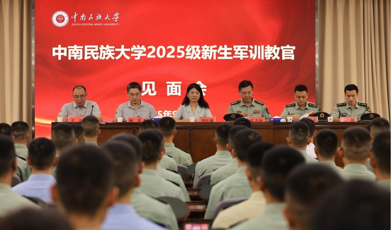 9月14日下午,学校在学术交流中心召开2025级新生军训教官见面会。校党委常委、副校长、军训领导小组组长李红燕,陆军工程大学军械士官学校学员某大队政委、军训团团长夏志华,校党委学生工作部部长、人民武装部部长、军训办公室主任、军训团政委杨涛,陆军工程大学军械士官学校某队教导员、军训团副团长刘庆丰,陆军工程大学军械士官学校某队队长、军训团参谋长杨超,各学院学生工作负责人、2025级全体本科生辅导员,承训单位全体官兵及全体助训教官参加会议。