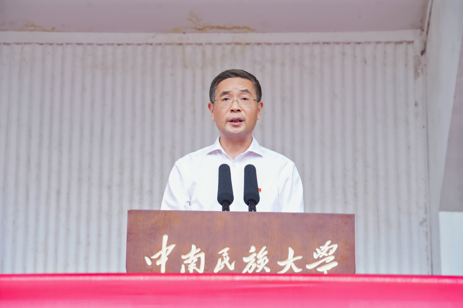 校党委副书记、校长刘义代表学校向承训部队赠送军训纪念锦旗并讲话。他对承训部队官兵的辛勤付出与悉心指导表示衷心感谢,他寄语新生:要把“坚韧品格”化作攻坚底气、把“纪律意识”化作成长自觉、把“团结精神”化作共同体担当、把“红色精神”化作信仰根基、把“家国情怀”化作挺膺行动,做迎难而上的奋斗者、守正笃行的追梦者、同心筑梦的同行者、薪火相传的传承者、报国为民的实践者。