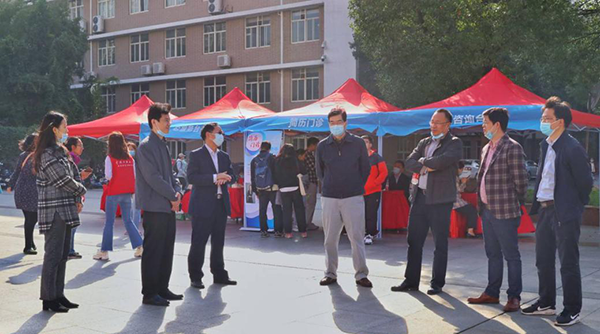 11月8日,由中共洪山区委组织部、洪山区人力资源局和必赢官网招生就业工作处、党委研究生工作部和经济学院共同主办的2020年“大学之城就业节”必赢国际437官网专场招聘会在15号教学楼前广场举行,活动邀请了70余家企业参加,吸引全校1000余名毕业生前来应聘。校长李金林、副校长杜冬云和洪山区相关单位、学校相关职能部门负责人到现场指导工作,了解招聘会的有关情况。
