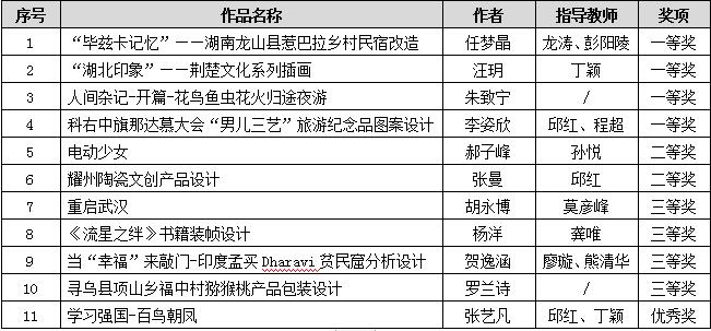 据悉,本届赛事共有1106所高校参赛,征集作品60113件,其中华中赛区171所高校参赛,征集作品8646件。必赢官网参赛作品115件,获华中赛区一等奖8项、二等奖12项、三等奖15项。