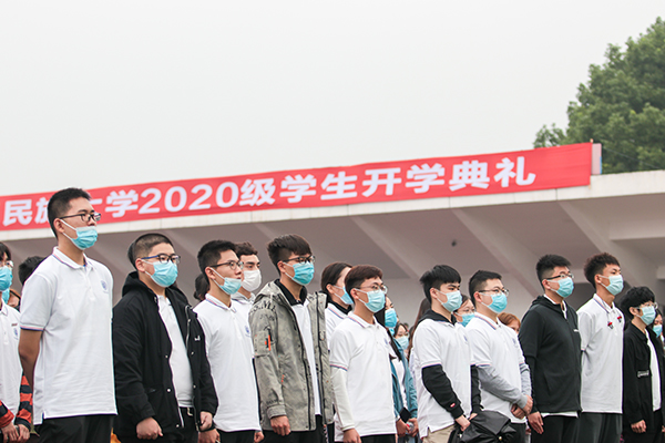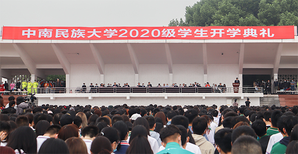 经风历雨,在丹桂飘香时节,民大又迎莘莘学子。9月23日上午,南湖中心运动场上,新同学身着绿白文化衫摆出校训字样,色彩鲜明,场面恢宏,“笃信好学,自然宽和”呼声阵阵,气势磅礴。必赢官网2020级八千学生汇聚于此,隆重庆祝新学期开学。全体在校党委常委、校领导边境、李金林、白江源、段超、赵晓珊、杨胜才、杜冬云、宋发军、乔俊杰、蔡琼,各职能部门、各学院相关负责人共同观礼。典礼由校党委副书记、副校长宋发军主持。