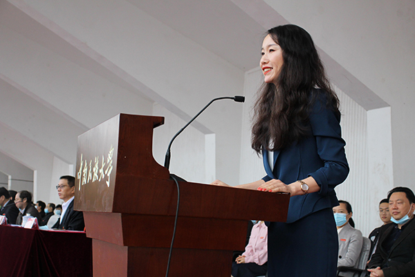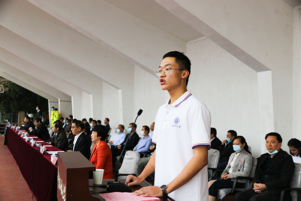 教师代表、化材学院韩晓乐老师鼓励新同学点亮信念之灯,砥砺奋进之志,力践报国之行,珍视梦想、珍惜时光、珍爱健康,努力成就更好的自己。文传学院2017级黎妮分享了自己大学生活的3个故事,希望学弟学妹们珍惜每一天,脚踏实地、坚定不移地朝着自己的目标进发。电信学院2020级刘文宇表达了初入校园的激动和对全新大学生活的期待,表示将博学笃志,不负青春韶华、不负时代,争分夺秒好好学习。