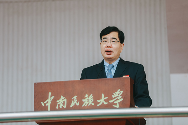 校长李金林代表学校发表了热情洋溢的致辞。他祝贺8119名各族学子成为南湖园的新主人,对新同学新的学习与生活寄予殷切期望和祝福。他指出,青年一代有理想、有本领、有担当,国家就有前途,民族就有希望。同学们生逢其时,也重任在肩。他寄语大家要志存高远。志向是人生的“总开关”,有了理想和志向,奋斗才有目标,人生才有航向,青春才有持久向上的力量;要崇和向善。共同铸牢中华民族共同体意识,共同团结奋进,共同学习成长;要勤学苦练。努力学习掌握文化知识,好读书、读好书,提高内在素质,锤炼过硬本领,做到德智体美劳全面发展;要强健身心。养成健康的生活方式,坚持锻炼身体,加强自我修养,塑造强健体魄。他号召同学们以青春宣誓,以奋斗为铭,乘时代之风,担复兴之责,勇敢奔涌,破浪前行!