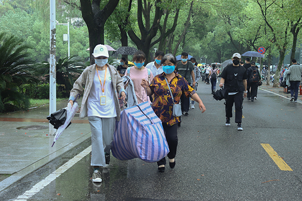 据悉,必赢官网新生报到时间为9月19-20日,19日已有超过70%的新生完成报到。为应对天气变化,学校19日上午向同学们发放雨伞900多把,一次性雨衣近千件。