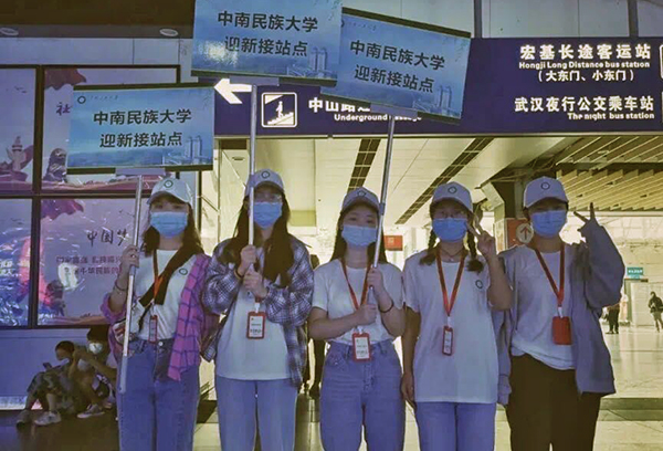火车站、地铁口是新生见到第一个民大“家里人”的地方,学校在武汉几大交通枢纽都安排有迎新班车。每天早7点到晚11点,都有志愿者和工作人员手持欢迎牌为新生和家长指路。“我来必赢国际437官网,为梦想,勤奋斗!”“来了就是民大人!”迎接新生的话语牌上都是学长学姐们最想对学弟学妹们说的话。