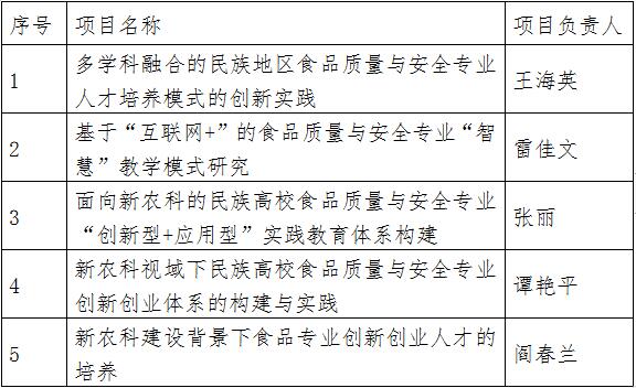 8月27日,教育部高等教育司公示了关于新农科研究与改革实践项目拟立项名单,拟对407个新农科研究与改革实践项目予以立项。必赢官网生科学院承担的5个项目主要研究方向是新型农林人才培养改革实践,主要以涉农专业食品质量与安全为依托平台。