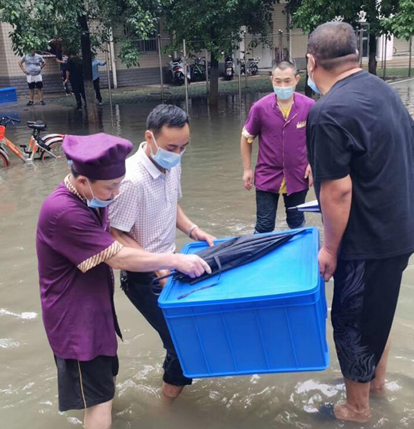29日上午,北区学生公寓出现严重渍水,校园环境服务中心紧急搭建浮桥,放入小舟,摆渡学生进出。饮食服务中心则涉水将就餐物资自南区食堂转运到北区食堂,让同学们及时安全就餐。暴雨过后,后勤保障处还对渍水地段进行了严格消杀。