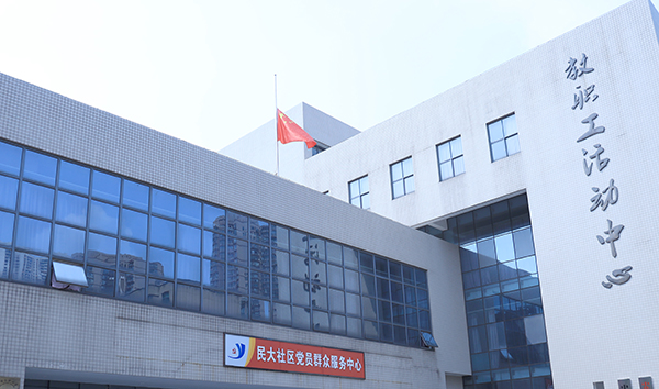 教职工活动中心下半旗致哀。刘虹 摄