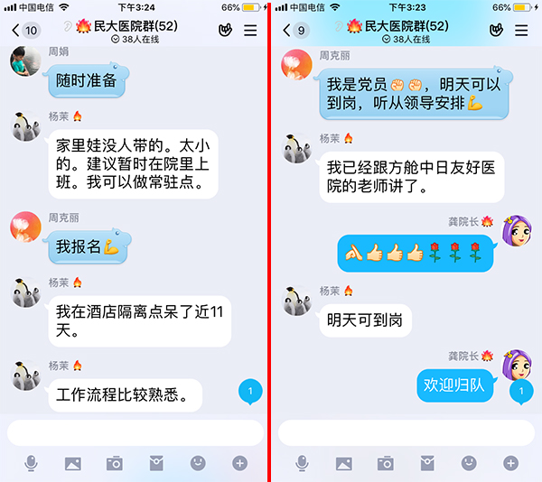 据校医院负责人介绍,自2月21日晚9点40分接到洪山区疫情防控指挥部电话命令后,校医院马上在工作群发布倡议书,征召医护人员参加洪山区狮子山街隔离点医疗保障工作。在不到半小时内,就有十多名医护人员请战,滞留外地、下沉当地社区参与防疫工作的医护人员也纷纷请求回汉“参战”。虽然此次只选派了3名医护人员支援隔离点工作,但其他医护人员也已经做好准备,将根据市、区防控指挥部工作安排,随时增援一线。前期主动申请参加校外隔离点和方舱医院工作的杨茉同志也在第一时间归队,熟悉工作流程的她再度出征战“疫”一线。