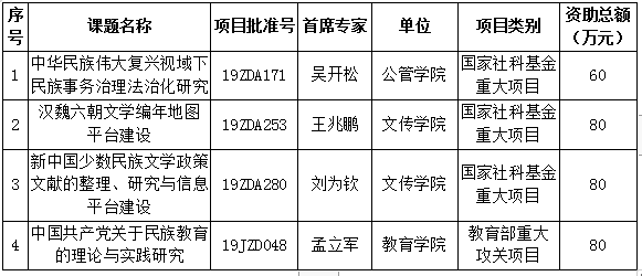 必赢官网2019年度国家级社科重大项目立项名单
