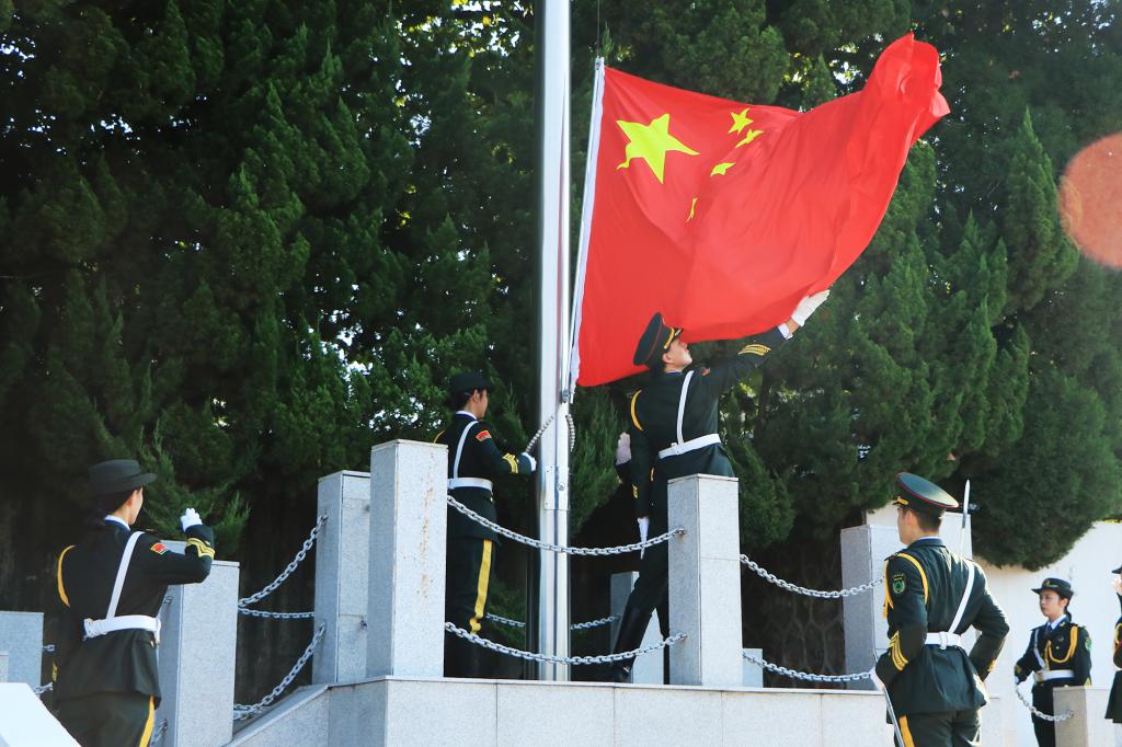 开学典礼在庄严的国歌声中拉开序幕。周肖琪 摄