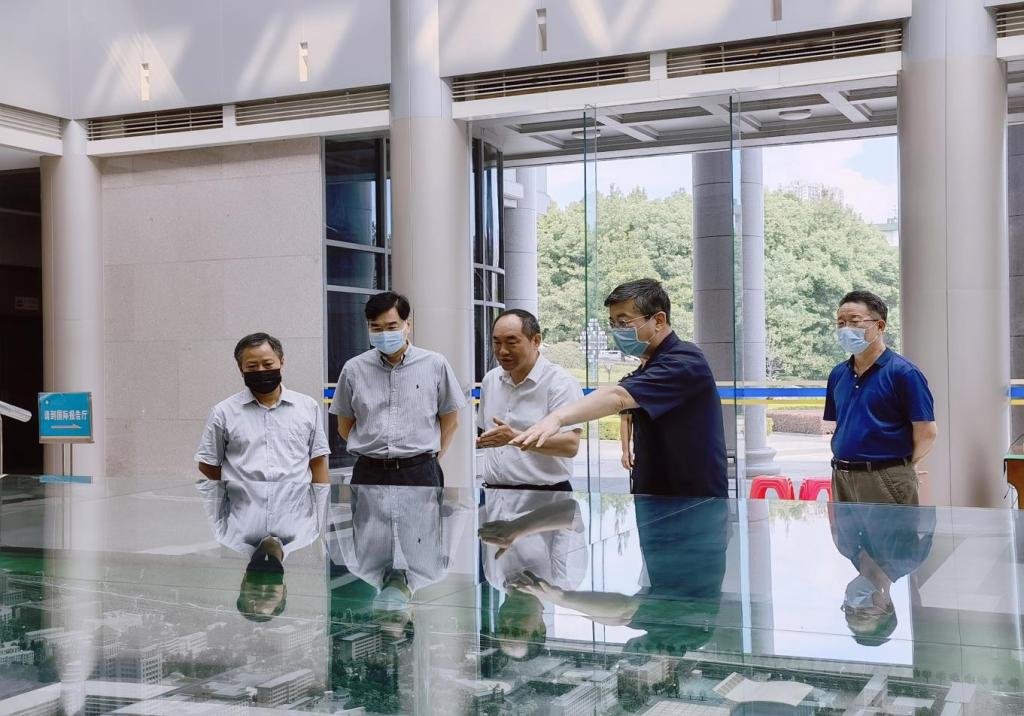 邓传淮司长(中)一行考察学术交流中心。 夏亚玲 摄