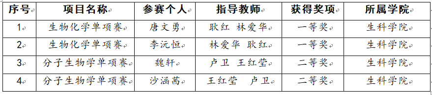 第八届湖北省大学生生物实验技能大赛单项赛必赢官网获奖情况