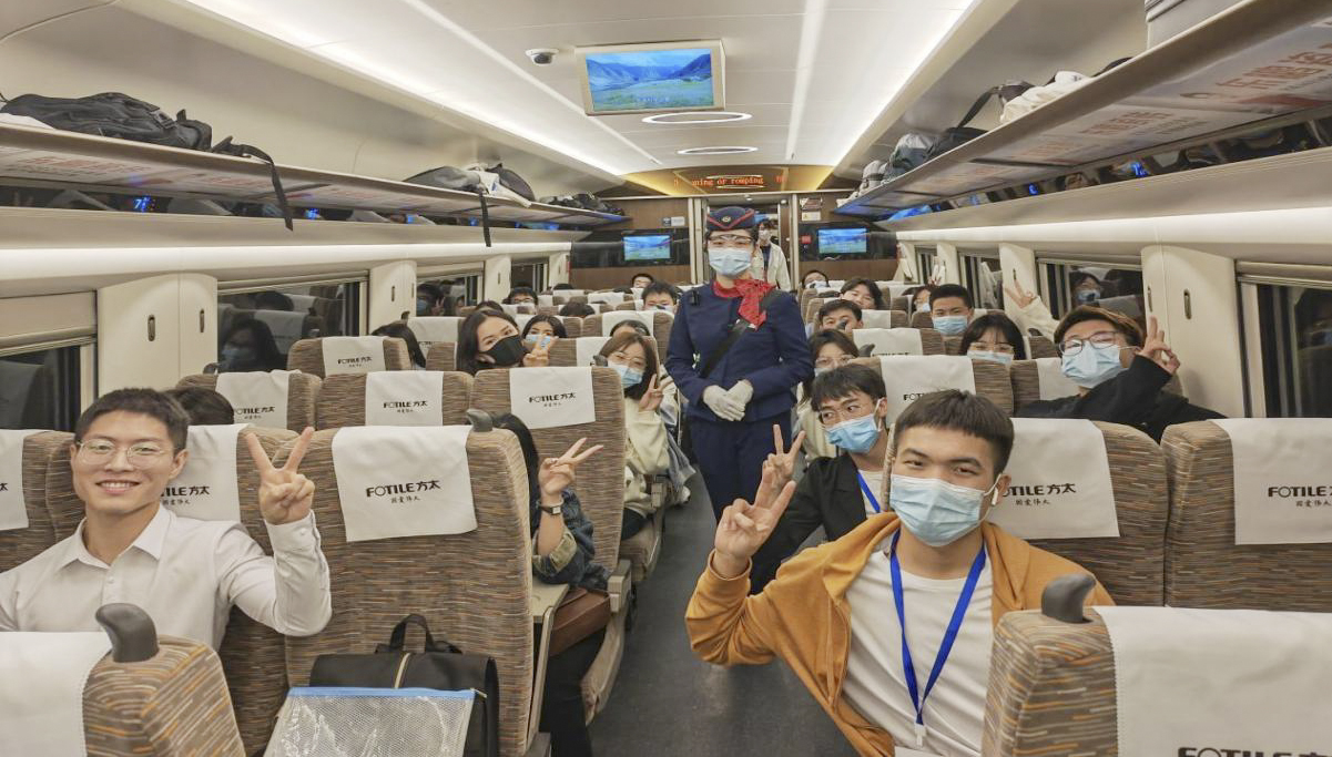 同学们高兴地乘坐高铁人才专列。 纪飞扬 摄