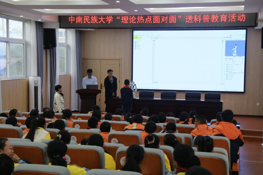 莫海芳副教授团队向屯堡中心小学同学展示智能机器人。冯占元 摄