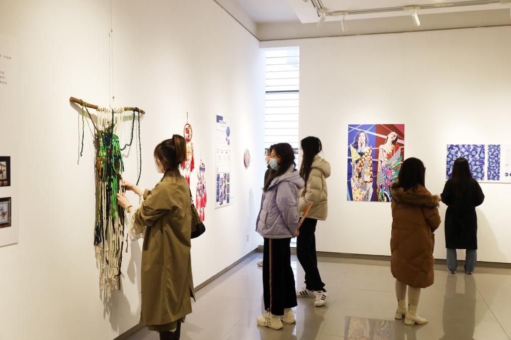 相较于第一届,本届展览艺术形式门类、作品数量、师生参与度、活动影响力等均有提升,共展出了美术创作类、视觉设计类、数字媒体类、手工艺创作类、空间设计类和“我眼中的中南民大”短视频6个大类90件作品。作品立足于中华文化,通过艺术设计让优秀传统文化在新时代下得到更好的展现和传承。《百年茶路——万里茶道包装设计》的外盒参考清朝黑漆描金茶叶盒,外盒侧面展开是一幅展现万里茶道中国段沿途八省市的遗产风光长卷,在盒盖侧立面饰以中国传统纹样,将丰富的中国传统元素融入到产品的包装设计上。除了众多视觉设计作品外,还有不少优秀的美术创作类作品,都蕴含着作者对于中华民族文化的深入思考和创新意识。荣获本次设计大赛一等奖的作品《游园惊梦》由2020级国画专业研究生李佳颖创作,就尝试将传统戏曲桥段与造型通过写意、抽象的视觉表现出来,独特且别致。