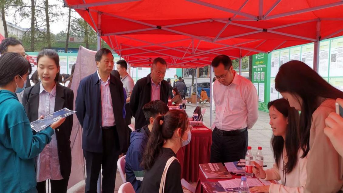 江汉区人民政府党组成员、副区长张显军,江汉区委组织部、江汉区人力资源局负责人,副校长杜冬云,招就处、管理学院、经济学院负责人到会场了解单位需求情况和指导学生求职就业。