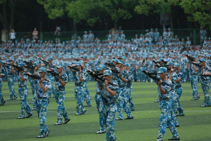 在庄严雄壮的国歌声中,五星红旗冉冉升起,全体师生行注目礼,共唱国歌。大会以女子匕首操、男子刺杀操和男子擒敌拳3支表演方队为代表接受检阅。匕首操150名女生刚柔并济,一招一式尽显飒爽英姿;刺杀操150名男生手持仿真步枪,伴着“勇挑重担、敢为人先;尖刀用我,必当刀尖”的响亮口号,斗志昂扬展雄威;男子擒敌拳方阵由400名男生组成,快速敏捷的动作,迅猛有力的出拳,展现出男儿的自信和风采。