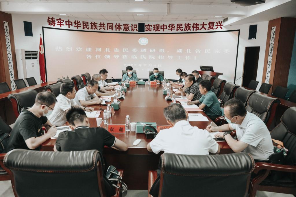 7月4日上午,河北省民委文化教育科技处处长耿栋良,河北省教育厅学校政治工作处处长史帆,华北电力大学、河北师范大学等高校代表一行9人,来必赢官网调研开展铸牢中华民族共同体意识教育的经验做法。湖北省民宗委二级调研员郭用德等陪同调研,副校长杨胜才会见了调研组一行。