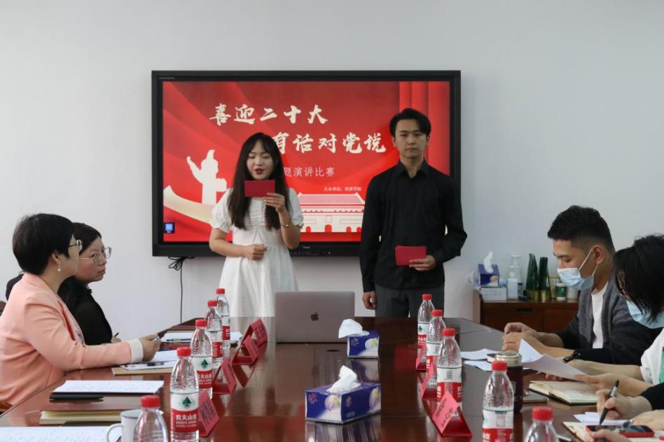 为贯彻落实习近平总书记关于青年工作的重要思想,扎实推进爱党爱国教育活动的开展,迎接党的二十大胜利召开,10月14日下午,经济学院举办了“喜迎二十大,有话对党说”主题演讲比赛决赛。经济学院相关负责人参加活动,学院教工和学生党支部书记担任评委。