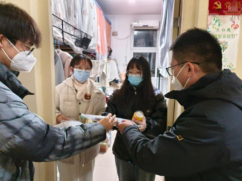 “最近状态怎么样?”“一定要做好个人防护,注意身体健康。”“希望你们都能一战成硕,考研成功!”……12月13日晚,民社学院领导、辅导员、班导师走进大四考研学生寝室,详细了解同学们的生活学习情况,并为他们送去了考研爱心大礼包。
