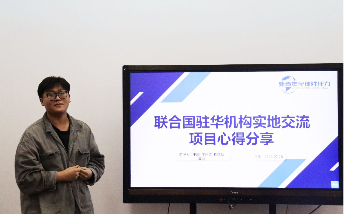 会上,4位同学就此次联合国驻华机构实地交流项目进行了心得分享,强调了“学会沟通、协同作战、主动积极、全局为重”在交流过程中的重要性,认为拥有全方位多角度思考问题、深层次分析问题和解决问题的能力是参与国际事务的关键点。他们表示,通过交流项目的实践,对自己专业有了更深入的认识,提升了自身能力,结交了不同的朋友,拓展了思维边界。