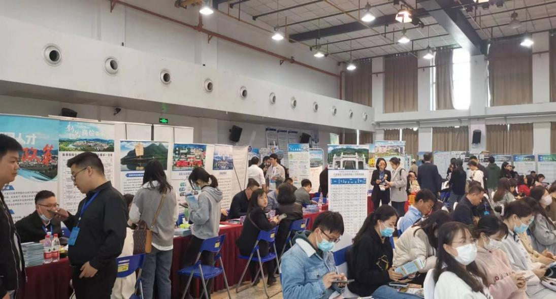 同学们在现场积极与招聘单位深入交流。来自管理学院的曹同学表示,找工作时着重考虑就业地点、未来前景、晋升模式等因素。身为湖南人,比较关注这次人才引进活动,在就业信息网看到招聘信息后就选好心仪岗位并准备好了简历。