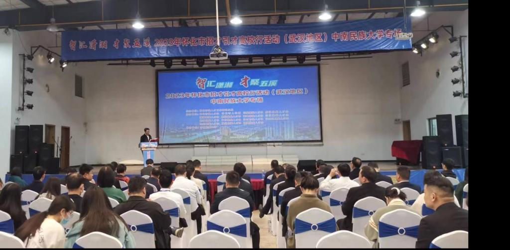 李博介绍了怀化的市情市貌,详细介绍了招才引才“二十条”及相关政策,发布了本次招聘的岗位需求信息,诚邀民大学子到怀化安业、兴业、乐业。