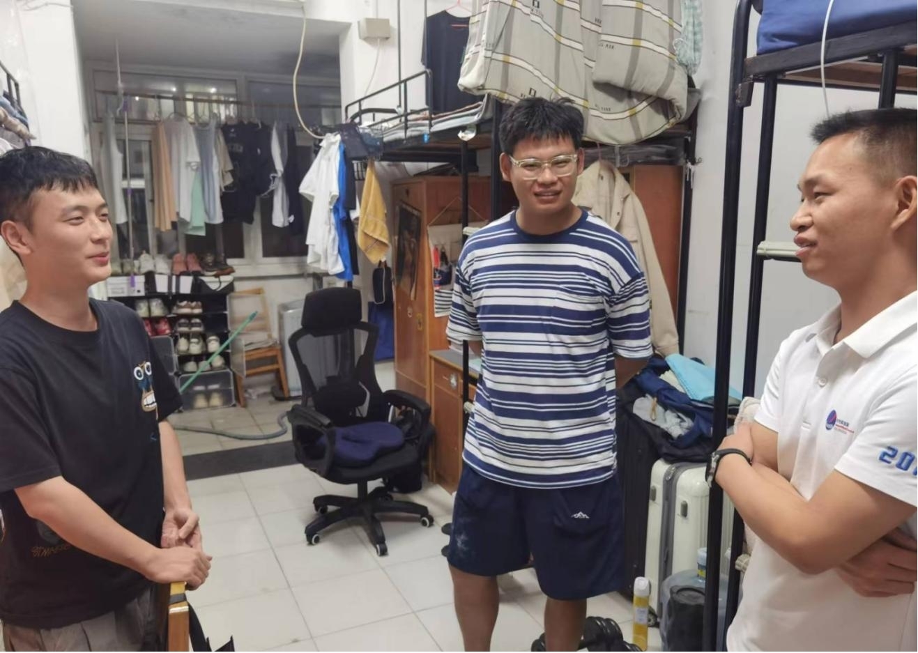 沈健老师询问了同学们在寝室的生活状况,强调要注意用电安全、消防安全。他建议同学们及时调整作息,尽快进入学习状态,遇到问题可随时向班导师寻求帮助。