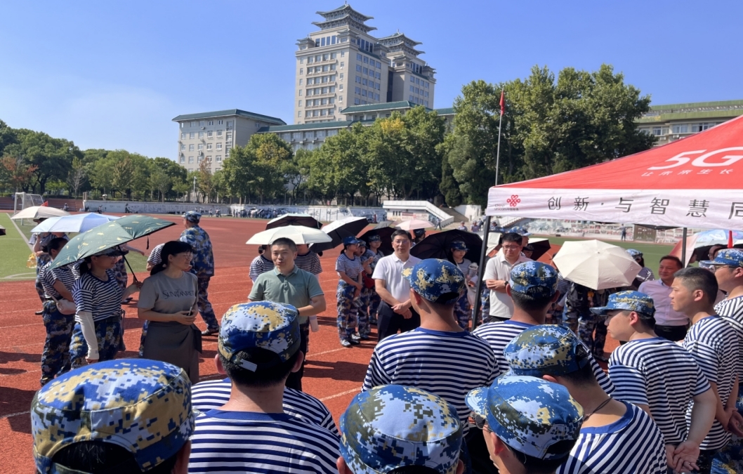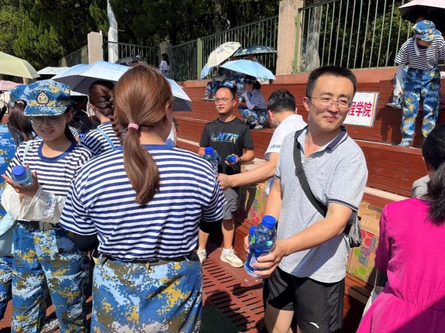 2022级本科生军事训练已经进行好几天了,同学们身着迷彩军装,精神抖擞,斗志昂扬,列队集结。9月1日下午,电信学院领导和22级班导师深入军训现场,走访慰问军训学生,与参训学生亲切交谈,了解参训学生军训情况和身体状况,并为大家送上解暑降温物资。