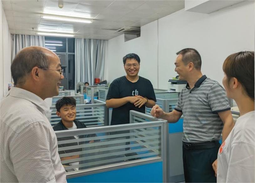 副院长徐志高、吕康乐教授等一行来到实验室,与假期坚持科研的同学进行了交流。在走访过程中,他们详细了解了同学们的学习状态与科研进展以及生活情况,重点对实验室安全、防范电信诈骗等进行了提醒,还就保研学生的院校选择等问题提供了指导和建议。