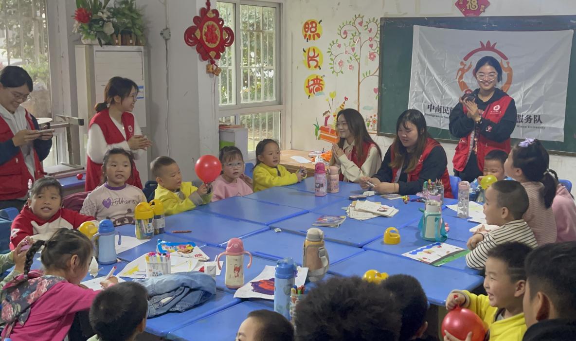 志愿者教小朋友们唱节气歌。 公管学院青协供图