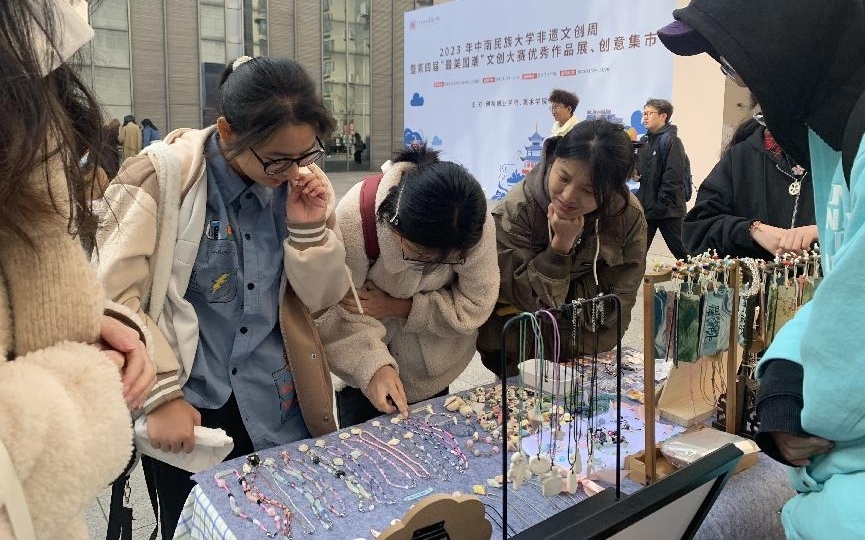 为铸牢中华民族共同体意识,提升学生的创新创业能力,自2020年起,“最美国潮”民族非遗文创大赛已经连续举办了四届,如今已具备了较好的规模效应。本届文创集市更是将学生们的设计作品转化为商品,让这些充满创新和非遗特色的文创产品走向市场,进一步推广和传承中华优秀传统文化。
