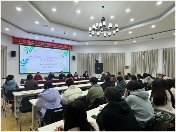 为进一步做好新生教育管理工作,2023年12月29日下午,教务处与经济学院在四号教学楼联合开展2023年“成长守望计划”师生见面会。教务处、经济学院相关领导,经济学院新生辅导员、“成长守望计划”入选学生参与此次见面会。会议由教务处副处长李明立主持。