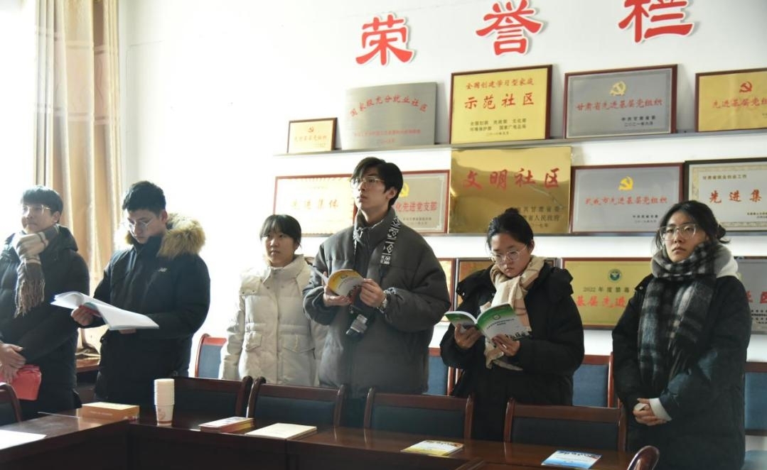 一路学,学“铸牢”经验,实践内容深入人心。学习实践途中,宣讲团以“历史文献法”“直接观察法”“半结构式访谈”为主要研究方法,实现学习实践与当地“铸牢”经验的有机结合、双向联动。团队成员在武威市凉州会盟纪念馆,围绕“凉州会盟”民族团结进步故事,聆听讲解并在馆内拍摄相关微视频,切身感受“凉州会盟”对中国民族关系史和汉、藏、蒙古民族史的重要影响。在天祝藏族自治县文润社区,宣讲团一行详细了解社区如何构建互嵌式社会结构和社区环境,如何凝聚居民中华民族共同体情感纽带,切实体会了铸牢中华民族共同体意识在基层社区落地生根的重要性。