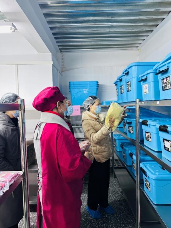 检查食堂仓库。 廖琼芳摄