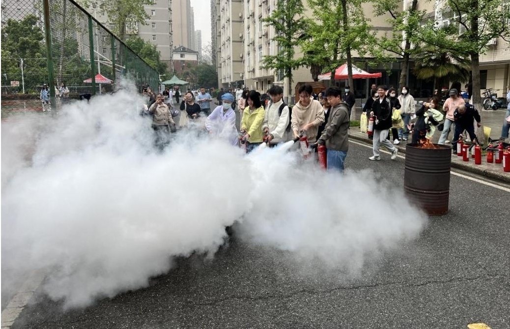 活动现场还发放了应急救护手册,展出了各类消防安全展板,培训指导师生使用灭火器、灭火毯……帮助师生更好了解消防知识和应急处置方法。在消防器材实操区,灭火器、灭火毯实操体验将活动推向高潮。