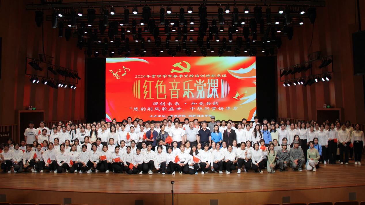 5月19日晚,管理学院2024年春季党校培训特别党课在光谷音乐厅开课。此次音乐党课由管理学院、创新创业学院主办,湖北广播电视台承办,近1000名师生参加。