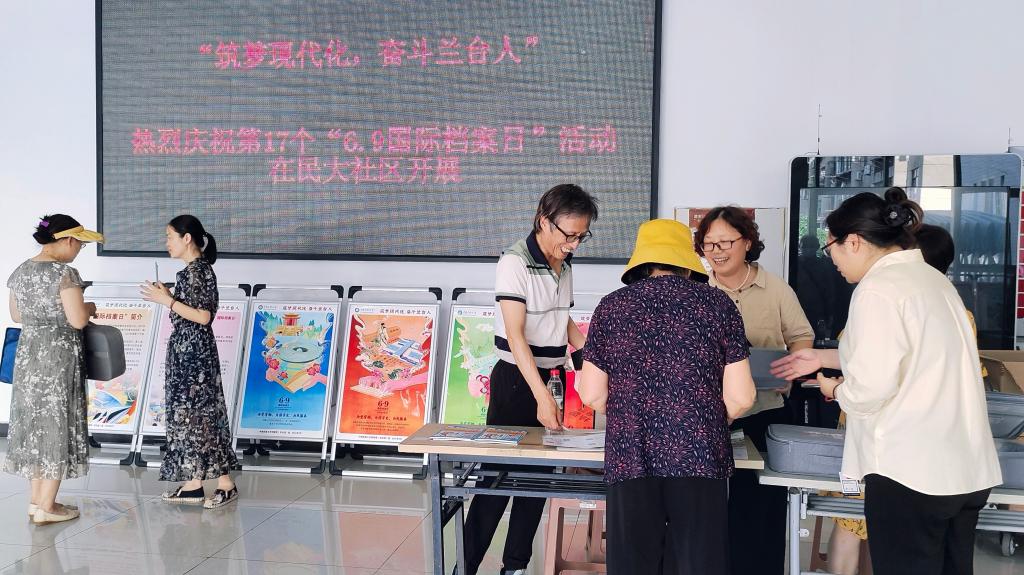 6月12日下午,在民大社区广场摆放档案宣传展板,现场发放档案宣传资料和家庭档案整理包,开展档案知识问答活动,示范家庭档案整理方法,普及关于档案的法律法规,为群众答疑解惑,进一步增强群众认知档案价值、增强保护档案的法律意识和档案文化意识。