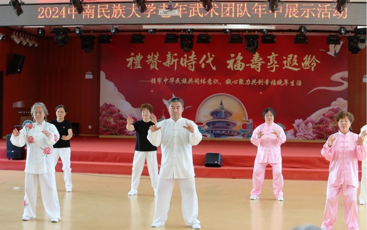 离退休工作处党委书记张文军、老年武术队负责人何翔、80余名老年社团成员代表及退休老师们欢聚一堂,共同参与此次武术展演活动。活动由刘汉丽、王周老师主持。