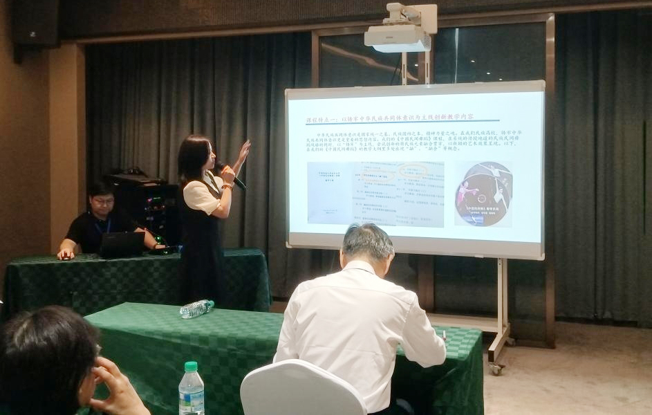 老年大学办公室主任胡蓉进行汇报展示。 离退休工作处供图