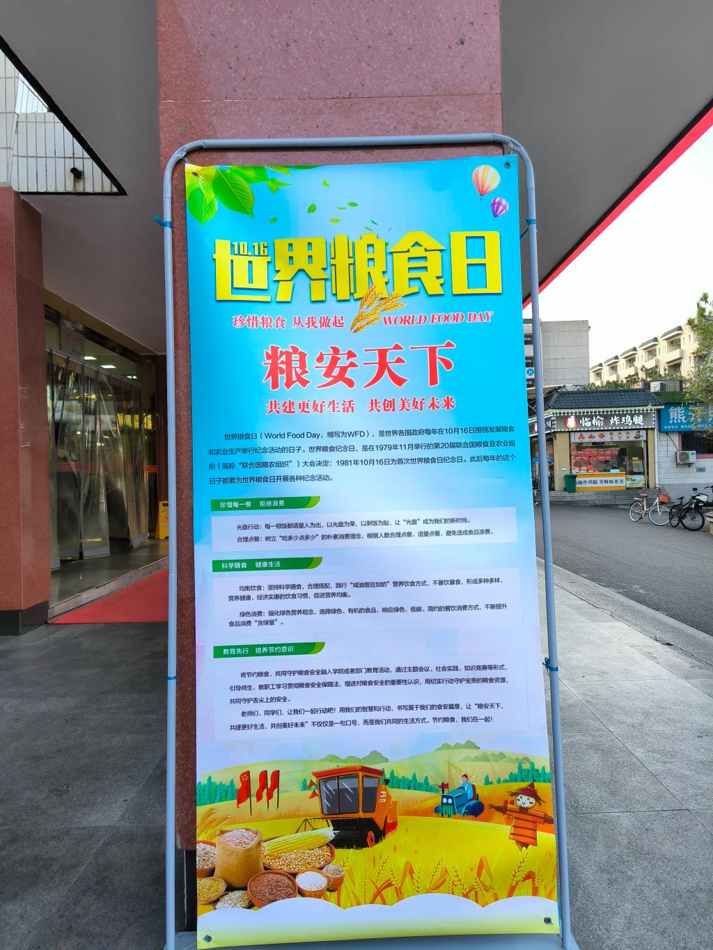10月16日是“世界粮食日”,该日至10月22日,为我国全国粮食安全宣传周,主题是“强法治,保供给,护粮安”。自16日开始,学校后勤保障处饮食服务中心以“共建更好生活,共创美好未来”为主题,开展粮食安全周系列活动。