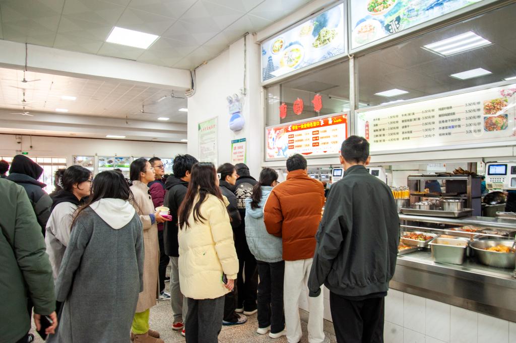 “我们对本次‘上岸’窗口的菜品名称、烹饪方法、荤素搭配等都进行了创新和尝试,物美价廉。学生们吃饱喝足,才有力气去学习!”后勤保障处的工作人员杜康说道。