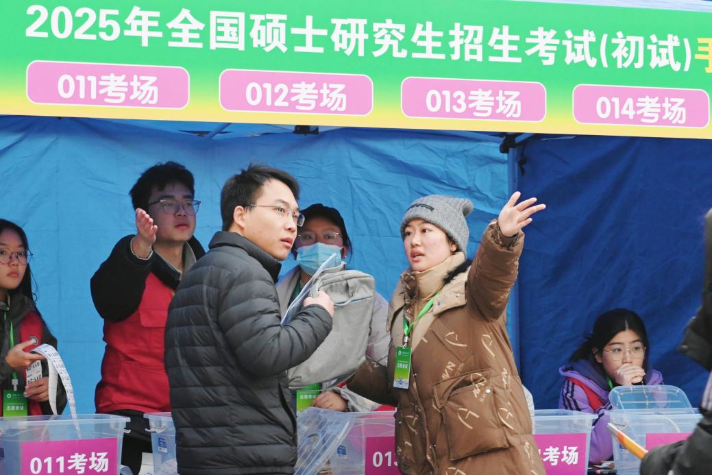 在15号楼前,学校特别设置了28个手机集中放置帐篷及133个存储箱。志愿者们协助考生存放手机,同时送上真挚的鼓励与祝福。那一抹抹志愿红和志愿绿,在寒风中毅然坚守,成为“研”途路上一道亮丽而温暖的风景线。