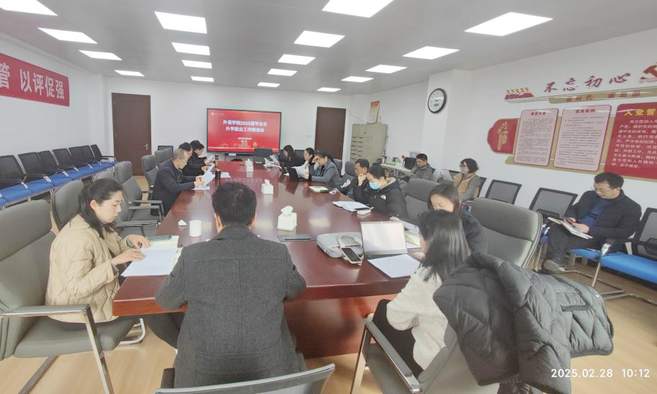 2月28日,外语学院在10号教学楼召开2025届毕业生就业创业工作推进会。学院领导班子成员、各教研室负责人、毕业班班导师及全体辅导员参会。会议由院长易立新主持。