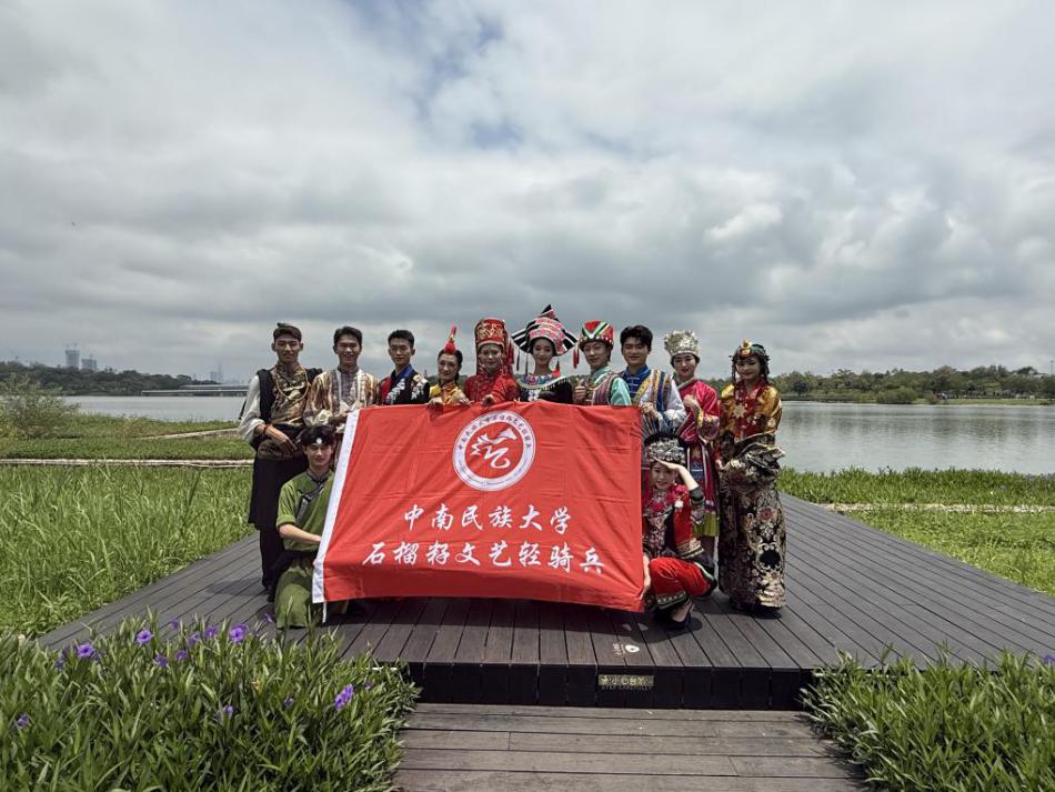4月21日至23日,必赢官网石榴籽文艺轻骑兵前往湖北恩施,在恩施大峡谷和女儿城的美丽风景中,队员们身着苗族和土家族的传统服饰,手持西兰卡普,通过艺术的形式,再现了土家姑娘出嫁时,母亲邀约邻友帮忙织西兰卡普的温馨场景。